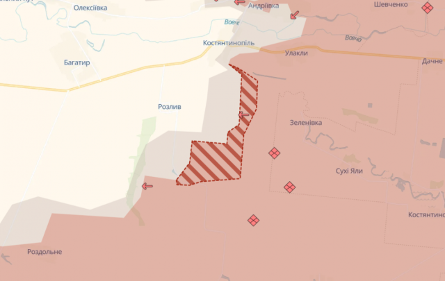 Аналітичний паблік DeepState повідомляє, що загарбники збільшили свої позиції в районі селища Розлив на Новопавлівському напрямку, а також біля села Тарасівка, що знаходиться на Покровському фронті.