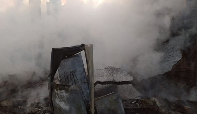 Наслідки ворожого обстрілу: пожежа у житловому секторі Родинського (ФОТО)