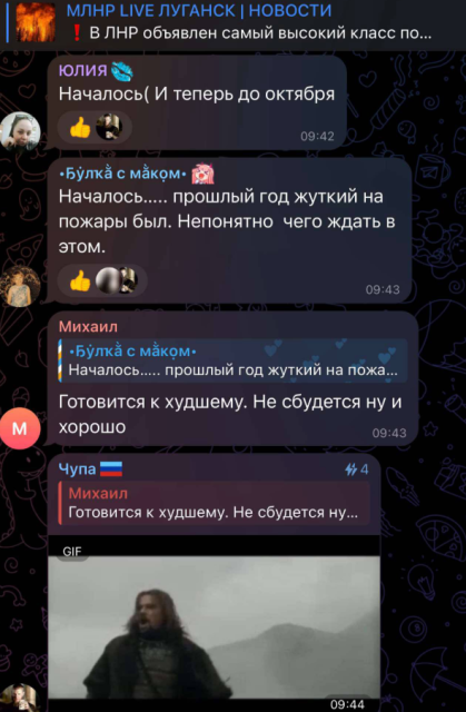 Відомо, що на більшій частині невизнаної «ЛНР» встановлена висока пожежонебезпека четвертого класу. З початку поточного року на окупованій території зареєстровано 735 випадків ландшафтних пожеж, що призвело до знищення понад 1,6 тис га лісових масивів та сільськогосподарських угідь.