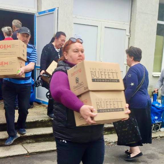 13 травня у Краматорську внутрішньо переміщені особи отримали гуманітарну допомогу від міжнародних організацій Global Empowerment Mission Ukraine та Howard G. Buffett Foundation.