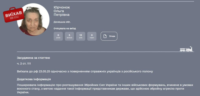 23 травня 2025 року мешканку Слов’янська Ольгу Юрченок, засуджену за державну зраду, передали до Росії в рамках обміну полонених.