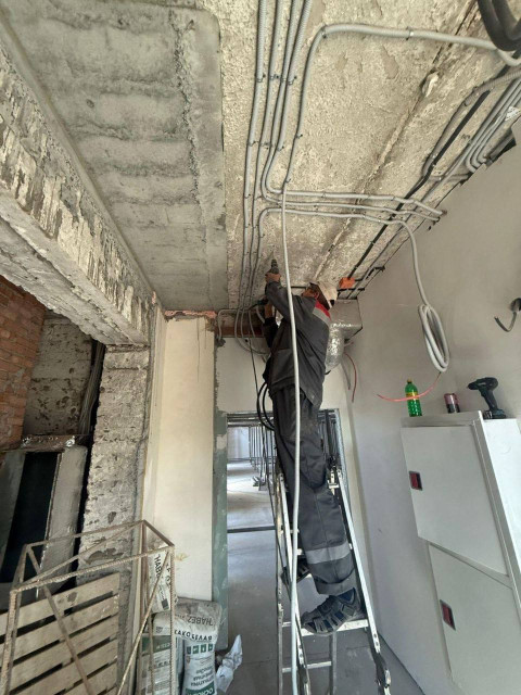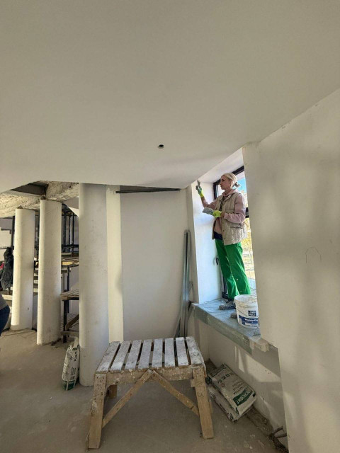 На цей час на об'єкті виконуються внутрішні та зовнішні оздоблювальні роботи. Робітники займаються облицюванням фасаду гранітом, встановлюють нові двері та монтують системи опалення й пожежогасіння.