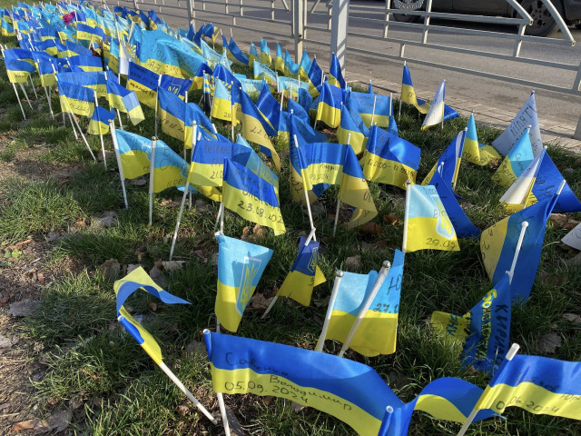 Як повідомив журналіст Сергій Горбатенко на своїй сторінці у Facebook, інцидент стався на газоні, де місцеві мешканці разом з активістами встановили прапорці пам'яті.