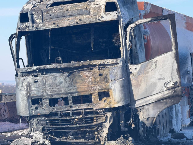 За повідомленнями місцевих Telegram-каналів, вантажний автомобіль повністю вигорів, але водій не постраждав.