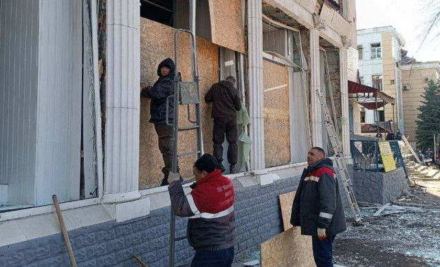 У Донецьку ліквідовують наслідки удару по району заводу «Точмаш», де у Київському районі міста пошкоджено низку будівель після влучання по території, яку, за даними місцевих пабліків, використовували російські військові.