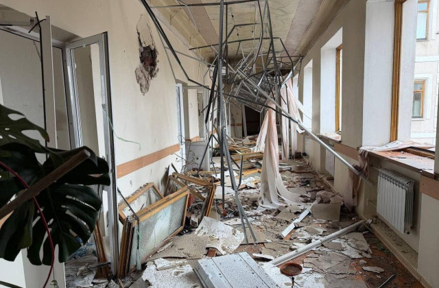 На тимчасово окупованій частині Донецької області після атаки безпілотників зафіксовано руйнування будівлі лікарні, де, за повідомленнями місцевих ресурсів, частково обвалилися конструкції.